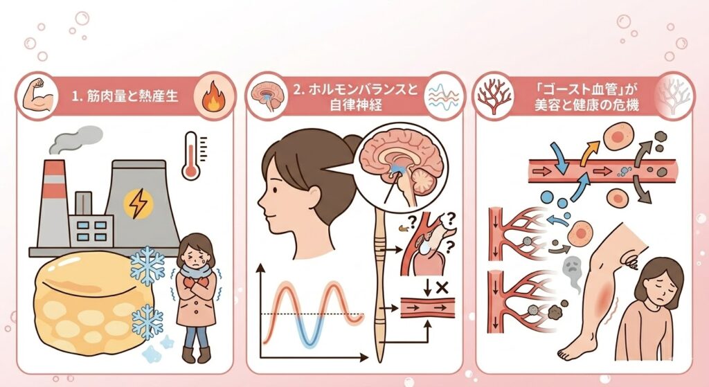 ① 筋肉量と熱産生:女性が根本的に冷えやすい理由