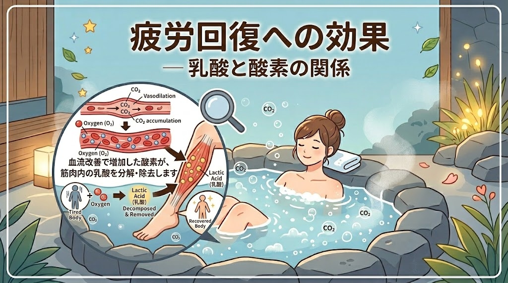 炭酸泉によって血管が拡張し、血流が増加すると、こうした老廃物の排出が促進されます。「湯上がりに体が軽くなった」「疲れが抜けた感じがする」という感覚は、まさにこのプロセスが起きていることを体が感じとっているといえるでしょう。